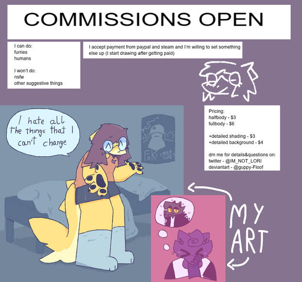 I'm guppy! I'm a weird internet furry bitch. I can't promise I'll respond to everything, but feel free to reach out if you've got something to say.